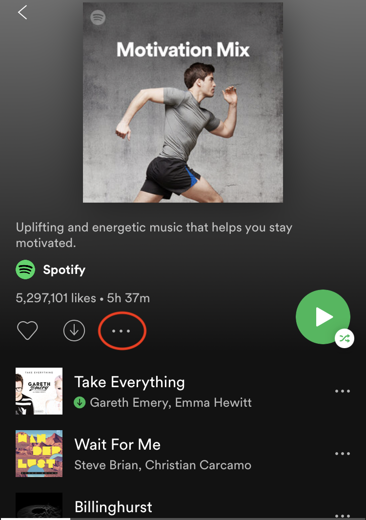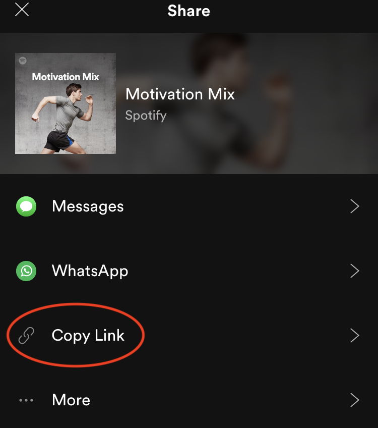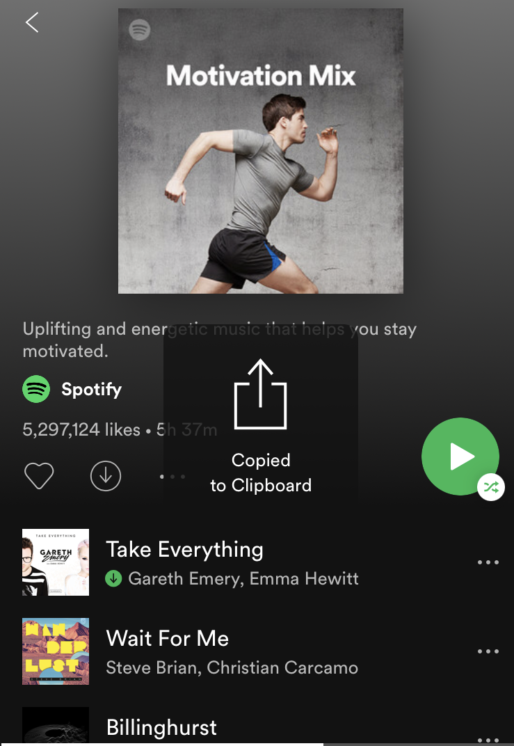 First, track down the playlist that you would like to include in your shortcut. Look for the three-dot (…) menu on the playlist’s page, select “Share” and lastly tap on the “Copy Link” option. The URL link to this playlist will now be copied to your phone’s clipboard. Just in case you were wondering – this shortcut works for podcasts as well. Simply look for your favorite podcast on Spotify and copy the link to the show to add it your shortcut.