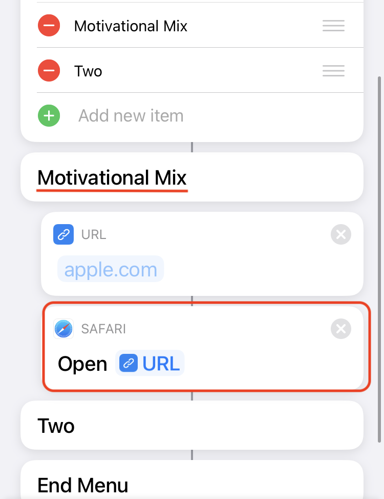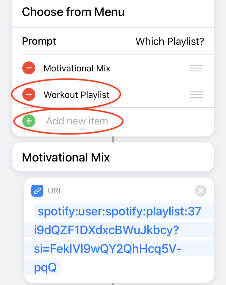 That’s the difficult part. Now you can repeat the steps above and add another playlist under your second menu item. You can also hit the “Add new item” button to add a third, fourth, fifth, … playlist to the shortcut.