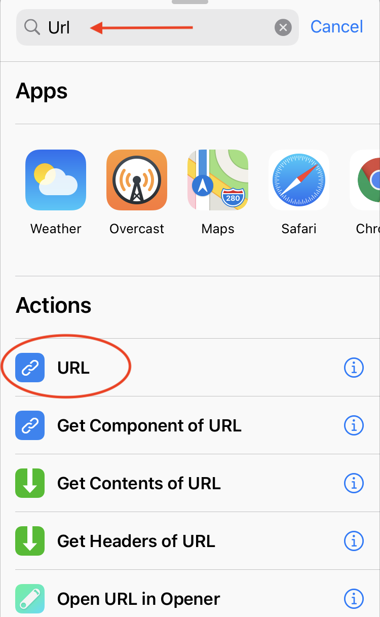 Now we get to the core part of this shortcut where you’ll actually insert the links to your Spotify playlists. The first step is to add another action to your shortcuts (use either the search bar or the plus at the end of the sequence). Search for “URL” and tap on the action. This new action will be added to the very bottom of the sequence, but you’ll need to drag it into place to slot in below the name of the playlist. Repeat the steps as mentioned, but this time search for “Open URLs” and once again drag the action into place below your playlist name.