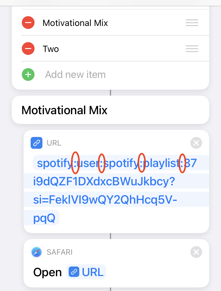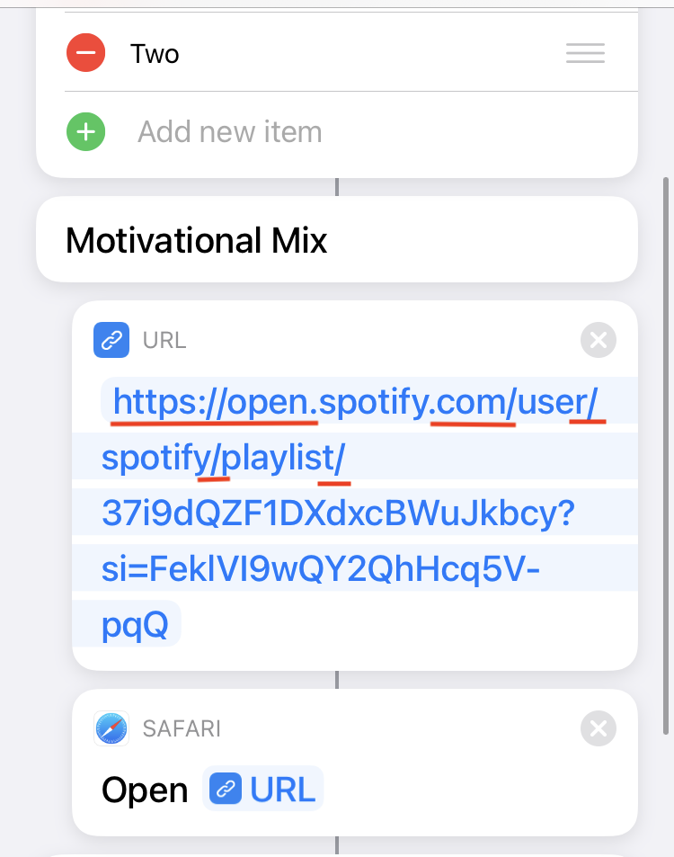 This is where things get a bit tricky, but stick with me through this step. The URL is not currently in the correct format to trigger your Spotify app. Instead, it will only launch Safari and will play the selected playlist within your browser – not what we want. To trigger the Spotify app, we’ll need to modify the URL in two ways: